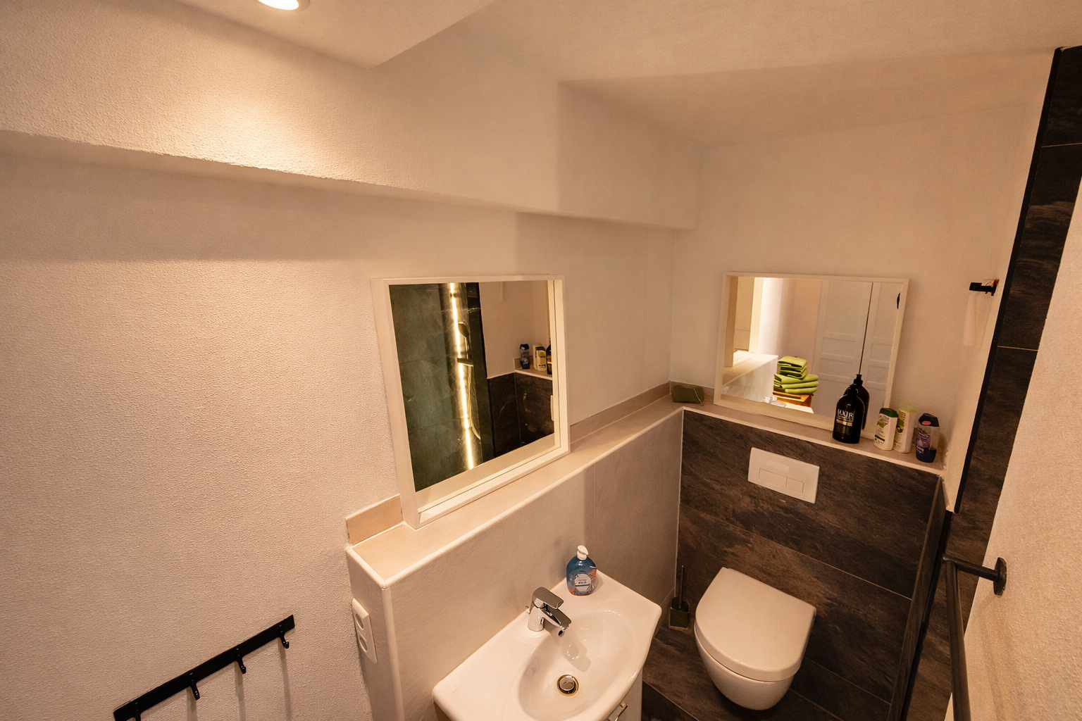 Die Verbindung zwischen den Ebenen erfolgt über eine steilere Stiege, die für trittsichere Gäste gut geeignet ist.